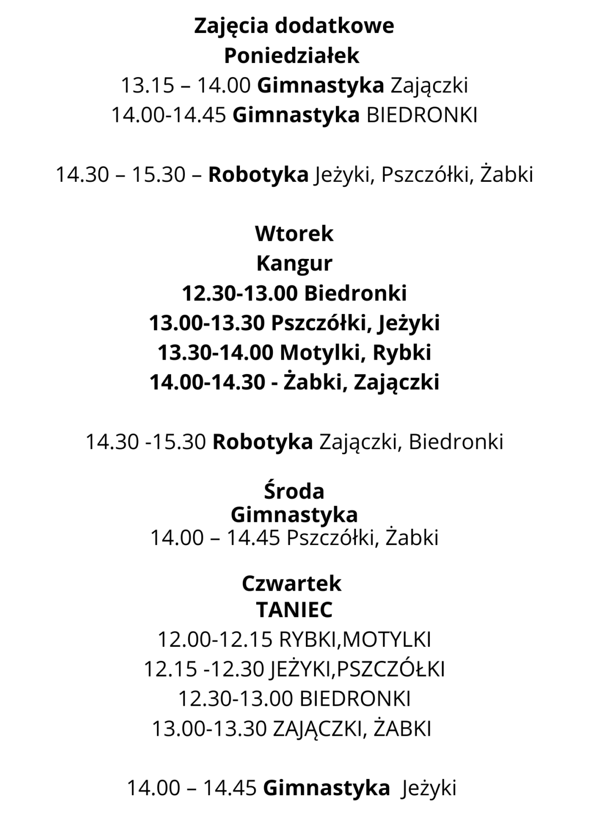 Zajęcia dodatkowe